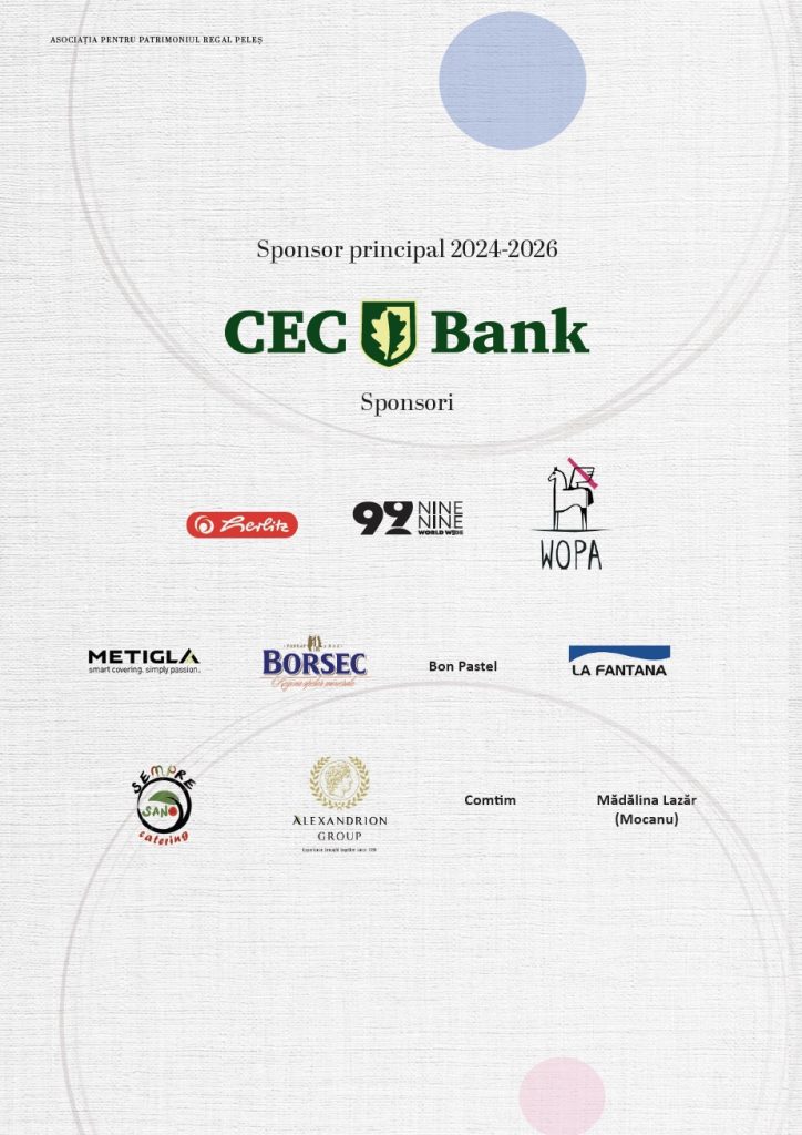 Un sprijin important în desfășurarea proiectelor din 2025 a fost asigurat de partenerii din mediul privat, a căror implicare a făcut posibilă continuarea unor inițiative dedicate restaurării și punerii în valoare a Domeniului Regal Peleș. Aceste colaborări reflectă importanța unui efort comun în protejarea patrimoniului și în susținerea proiectelor cu caracter cultural și istoric.