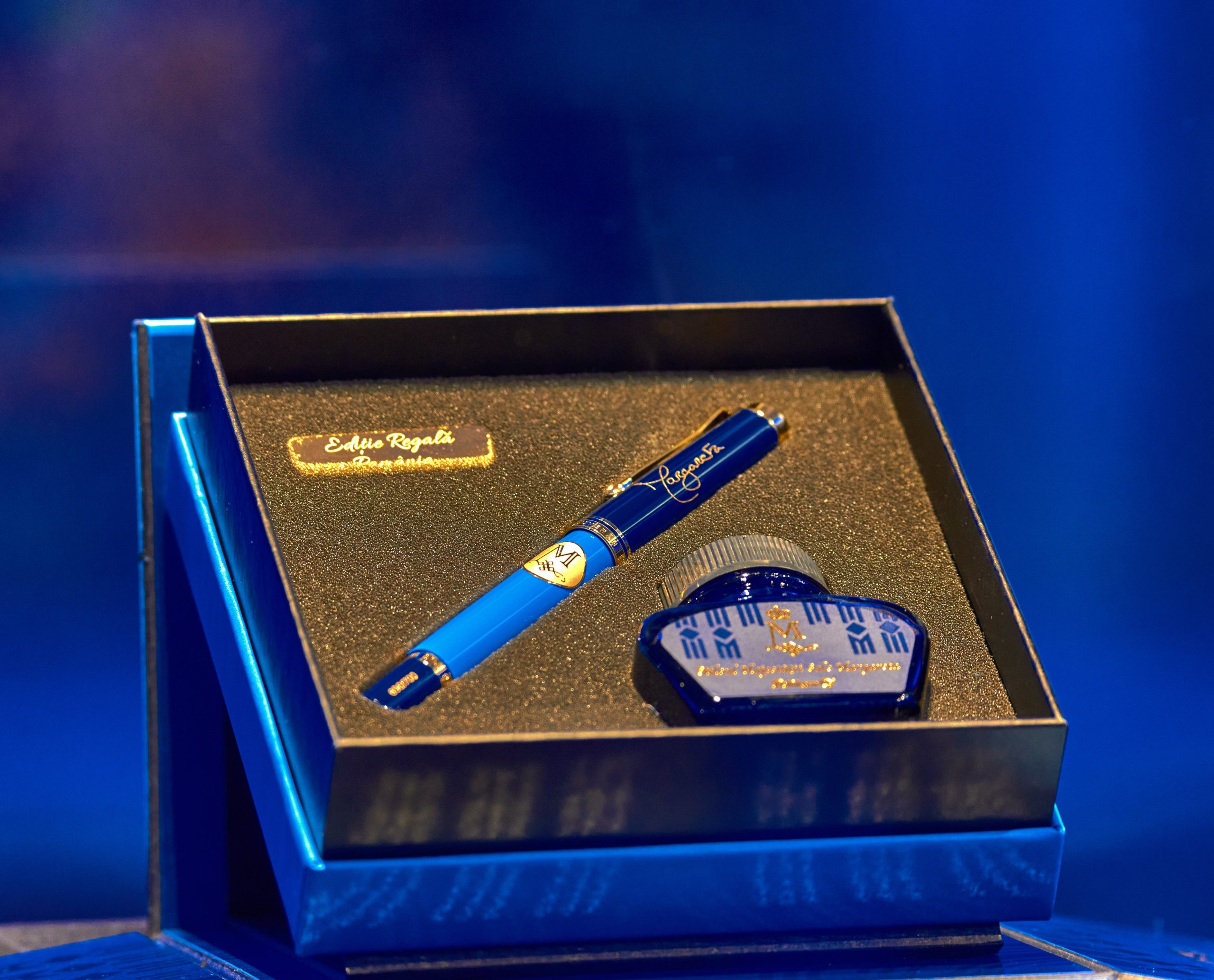 Trei elemente distincte transformă acest stilou dintr-un instrument de scris într-o piesă cu semnificație profundă. Deviza regală „Nihil Sine Deo”, gravată pe inelul placat cu aur, evocă credința, continuitatea și forța valorilor spirituale și morale. Sigiliul Majestății Sale Margareta, încastrat în corp și reprodus în aur de 24K, certifică autenticitatea și subliniază caracterul oficial al ediției. Semnătura Majestății Sale, realizată cu pulbere de aur, conferă fiecărui exemplar o valoare personală și afectivă, transformându-l într-un obiect de colecție cu rezonanță unică.Colecția este limitată la 700 de exemplare numerotate individual, de la 1/700 (care aparține Majestății Sale) până la 700/700. Fiecare stilou este însoțit de o călimară de cerneală Pelikan 4001® de culoare albastru regal, completând o creație cu valoare istorică și simbolică.